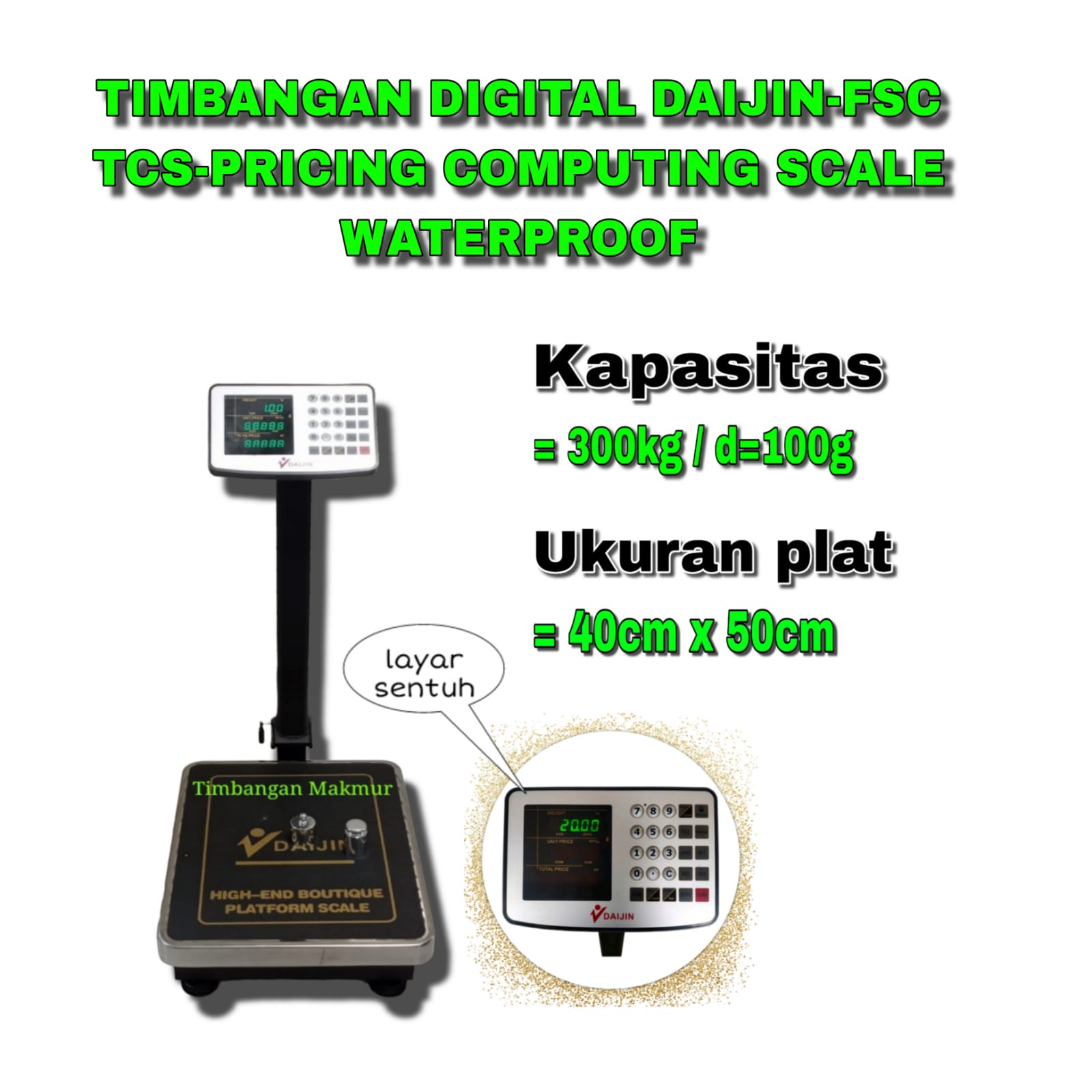 TIMBANGAN DIGITAL Daijin FSC 300 KG Layar Sentuh dan Water Proof